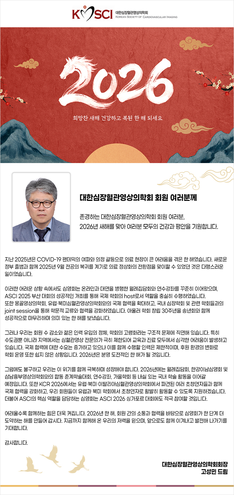 2026년 KOSCI 회장 고성민교수님 신년사